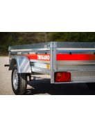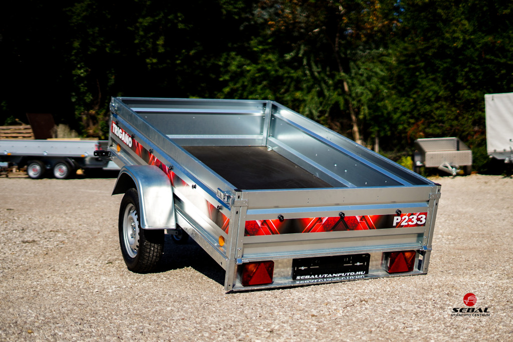 Remorca Trigano P233 de 750kg cu mono ax fara sistem de franare este ideala pentru transportarea de marfa usoara, avand latimea ideala pentru majoritatea materialelor de constructie cat si a europaletului.